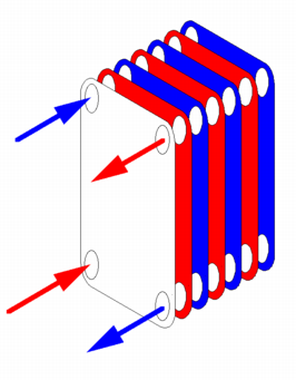 مبادله کننده حرارت به صورت یک در میان در فواصل صفحات جریان پیدا می کنند. برای