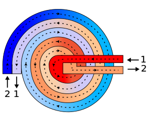 سیال در درون لوله کوچکتر و و سیال دیگر در پیرامون آن حرکت می کند. بدین ترتیب